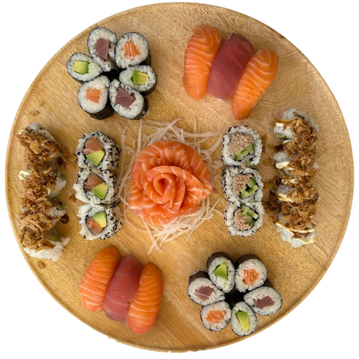 Sushis et makis préparés avec du riz japonais vinaigré et du poisson frais de la Méditerranée.