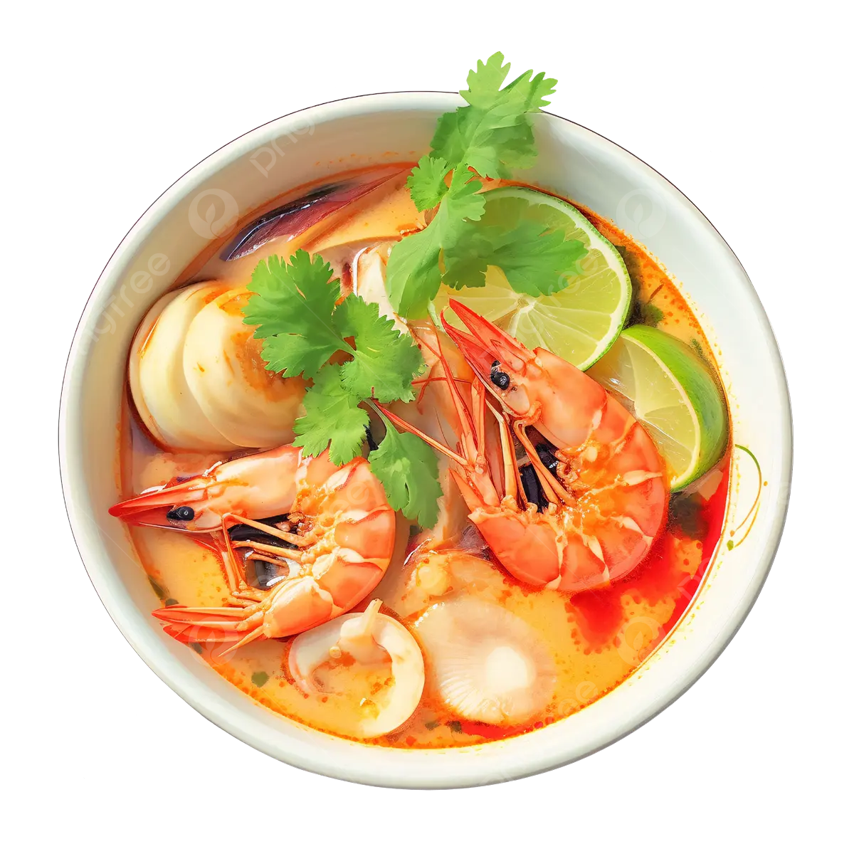 Soupe épicée aux crevettes, citronnelle, galanga, feuilles de kaffir.